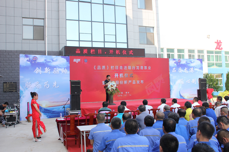 7月14日,《品質(zhì)》欄目走進煙臺龍港泵業(yè)股份有限公司開機儀式暨龍港股份新產(chǎn)品發(fā)布儀式在龍港股份隆重舉行。煙臺高新區(qū)工委副書記劉來英,《品質(zhì)》欄目執(zhí)行制片人劉斐,高新區(qū)直有關(guān)部門負責人,國內(nèi)石化領(lǐng)域部分專家學者、高新區(qū)企業(yè)家協(xié)會企業(yè)家代表等出席儀式。